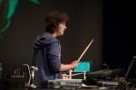Some pix from The PIGS (Percussive Image Gestural System) debut this month as part of the IDEAS series at Qualcomm Institute. Curt Miller and I developed an improvisational audiovisual performance, “Rocket’s Red Glare,” based on the theme of “Things Exploding on YouTube.” I used PIGS to perform visuals, and Curt performed live clarinet, custom software, and vintage cassette tape recorder.